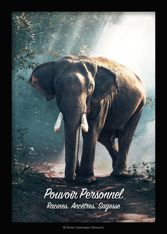 L'Éléphant a le pouvoir de vous mettre en contact avec les énergies de vos ancêtres et avec la Sagesse des Anciens. Il a aussi la capacité d'ancrer et de stabiliser les énergies à ma surface, grâce à son puissant enracinement dans la Terre.